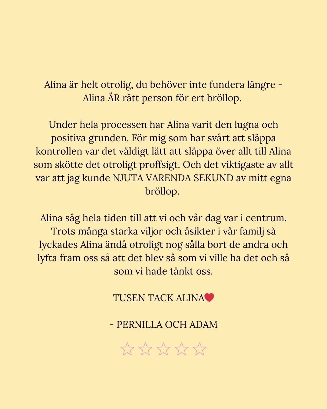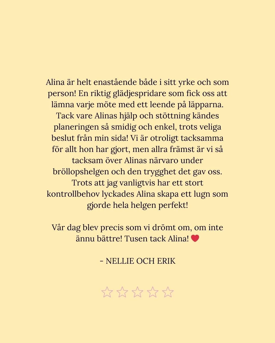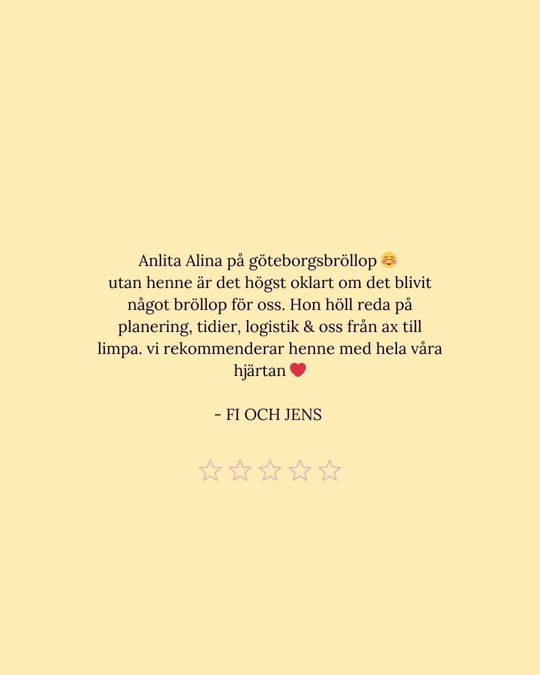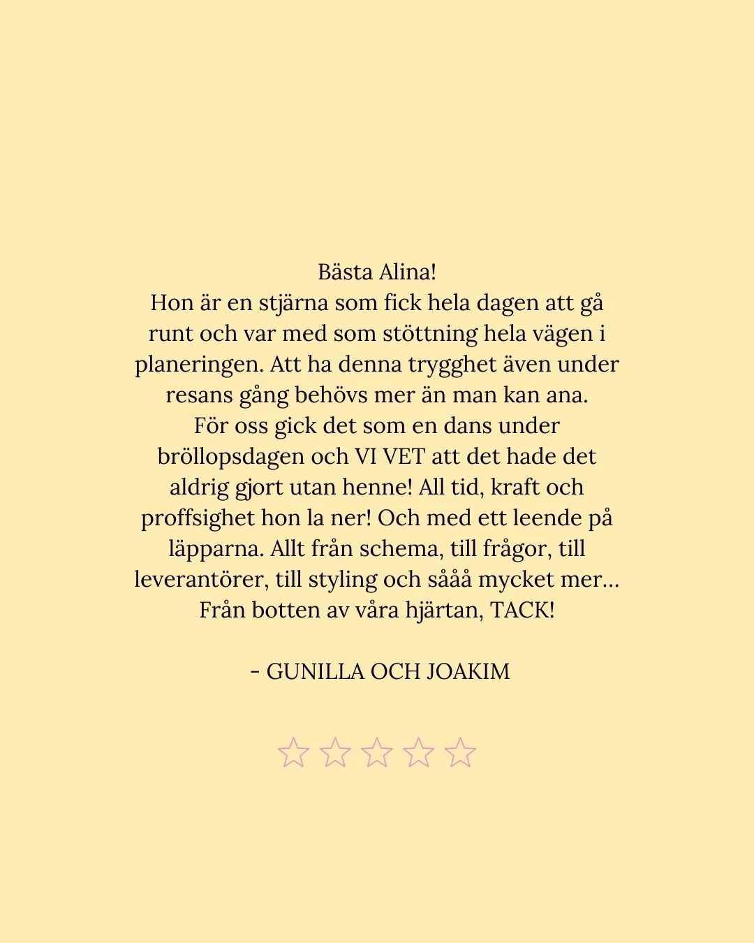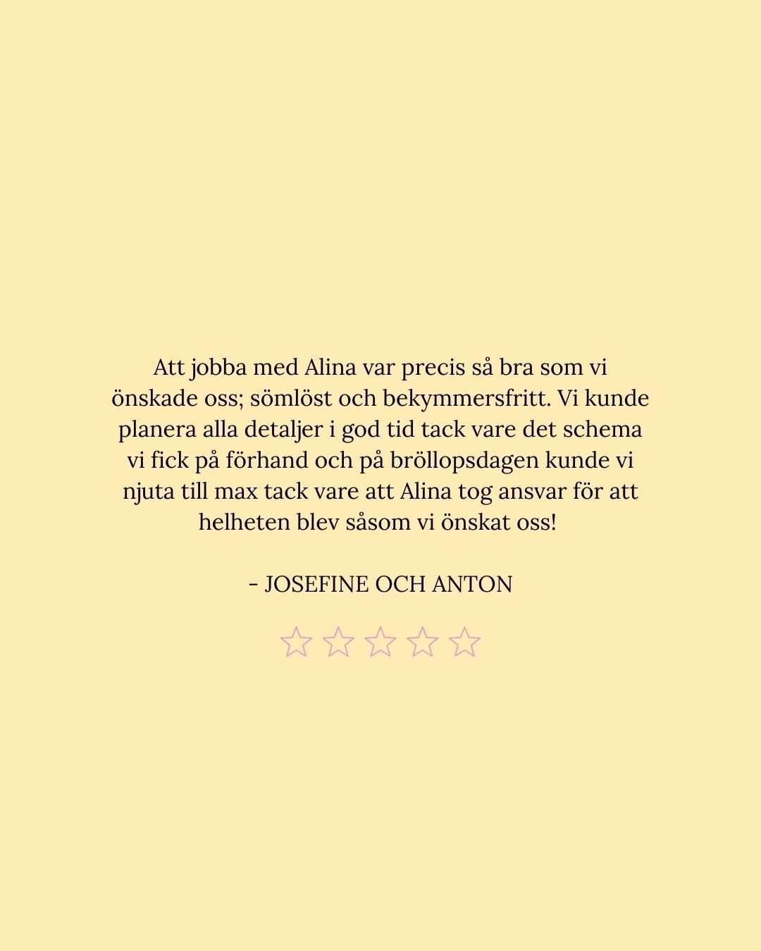 För mig handlar det inte bara om att planera ert bröllop. Det handlar om att förstå er, vad som är viktigt på riktigt, och skapa en dag som känns ni in i varje detalj.