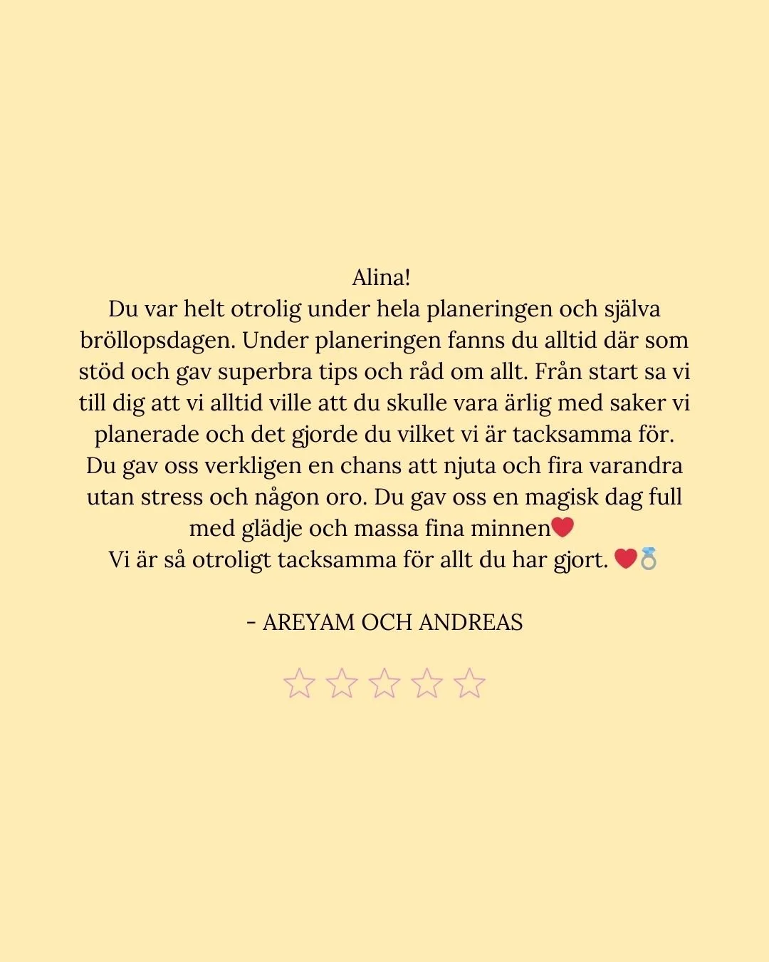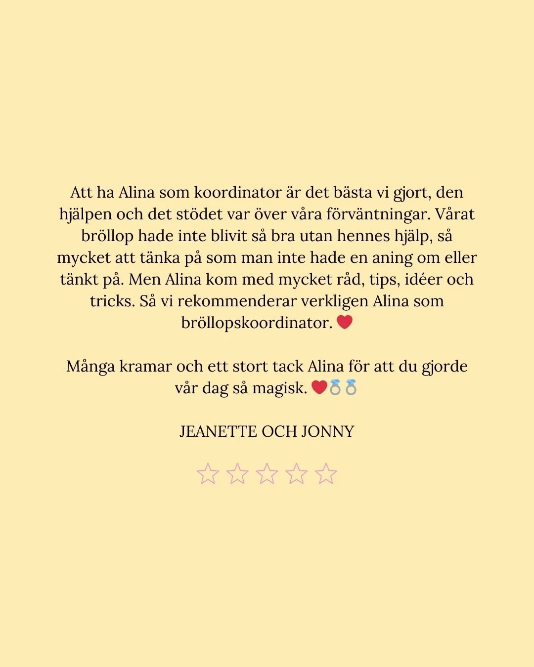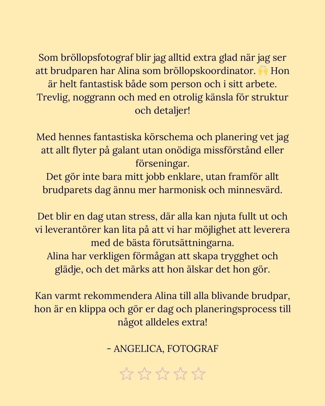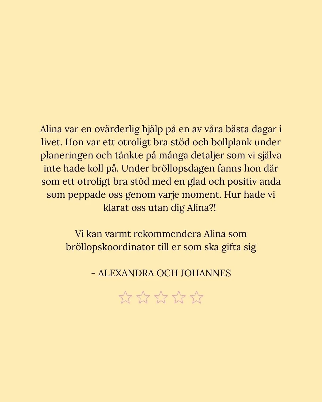 För mig handlar det inte bara om att planera ert bröllop. Det handlar om att förstå er, vad som är viktigt på riktigt, och skapa en dag som känns ni in i varje detalj.