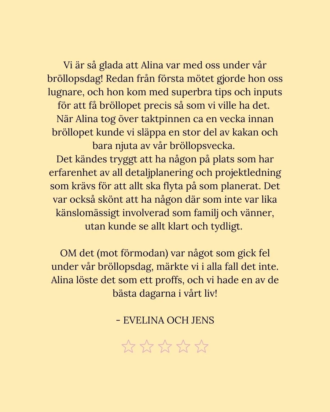 Allt för att ni ska kunna släppa stressen, njuta av planeringsresan och vara fullt närvarande när er dag väl är kommen!